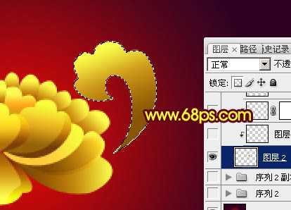 2、先来制作牡丹部分,新建一个图层,用钢笔勾出图3所示的花瓣选区,拉上图4所示的线性渐变。