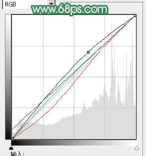 3、创建曲线调整图层,对绿,蓝进行调整,参数设置如图7,8,效果如图9。