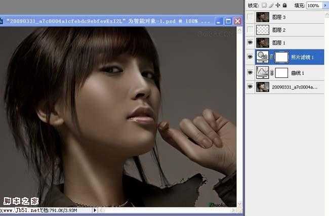 本教程简单介绍暗调质感肤色的人物处理方法。大致过程:先给人物稍微磨下皮,然后就是一系列的调色过程,颜色需要调整的较暗。后面的就是高光制作。方法简单实用。