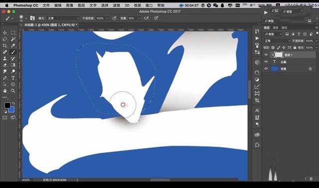 9、然后做右边的笔画的效果,先将笔画进行框选,然后进行反选,然后进行涂抹渐变效果。