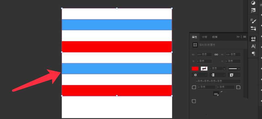 1、点击矩形工具,绘制间距相等的蓝色和红色矩形。
