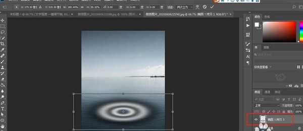 5.合并所有椭圆图层,Ctrl+T调整下透视。