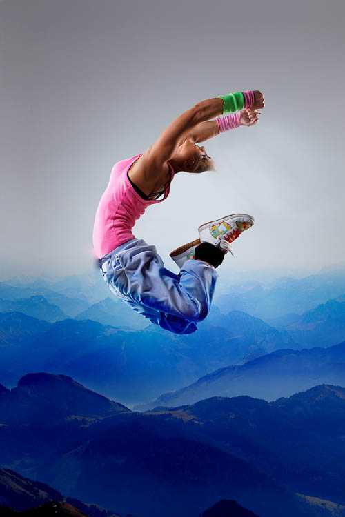 3、为了制造一种迷人的背景,我用了一张山的风景图。将这张风景图图层放在下面,并将图层的混合模式设为颜色加深。创建一个矢量蒙版,弃掉部分图像使图层混合的更光滑。