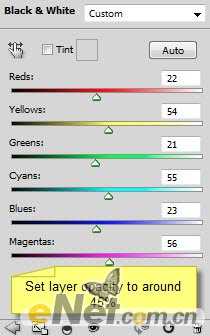 添加“黑白”图层调整选项
