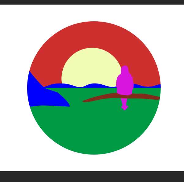 首先,大多数教程多是直接开始构件图层,虽然这种小图不会有太多的构图问题存在,但是我还是觉得制作之前应该有简单的构图。下图为我大致的起草构图,颜色仅适用于区分色块和区域,只要鲜明,美丑并不要紧,反正都要覆盖。
