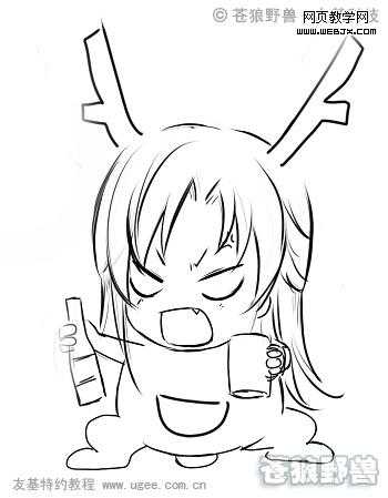 夸张的Q版,眼睛也画得比较夸张。接下来我们给他加上一些效果: