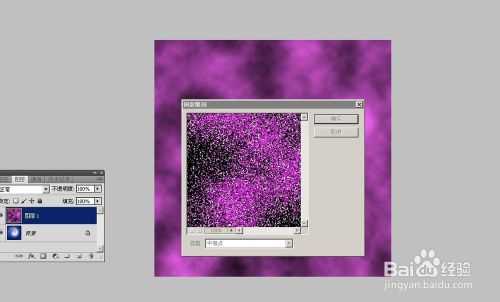 新建图层1,填充稍浅而鲜艳的颜色。还是滤镜/渲染/云彩,再滤镜/像素化/铜版雕刻,选中等点