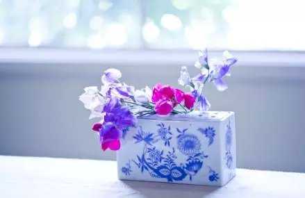 逆光稍微做一点变化就变成侧逆光,花瓶本身就具有一定形态的美感,再加上外采的野花,因此花、花瓶、桌子这三个层面的东西都能被表达出来。但只有在逆光的时候,花瓣的色彩才会被渲染得最好看;在顺光的时候,花瓣的部分很难产生通透感。