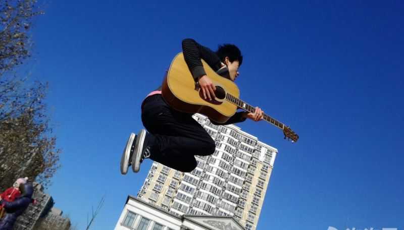 技巧二:如果只为扑捉腾龙后的一张照片,不建议拍照者手机跟随被拍者一起移动。因为移动过程中手机势必会有不同程度的抖动现象,快门按下的一瞬间,造成照片模糊,影响整体效果。建议拍照者预估被拍者跳跃后的最佳位置,对准该位置连续拍摄,最后找出最佳样张。