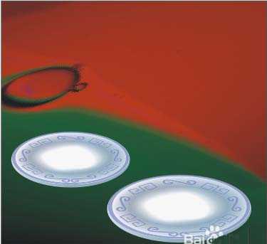4、继续3的方法,再画一椭圆,填充颜色后放置在盘心部位,如图