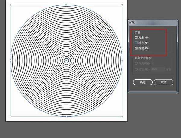 2、全选,点击对象-混合-建立,设置步数。点击对象-扩展,扩展对象和描边。