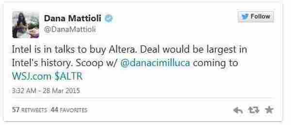 3月27日的下午,几家新闻媒体报道,有人因一条推文赚了240万美元。这条推文是《华尔街日报》记者Dana Mattioli发布的突发新闻。