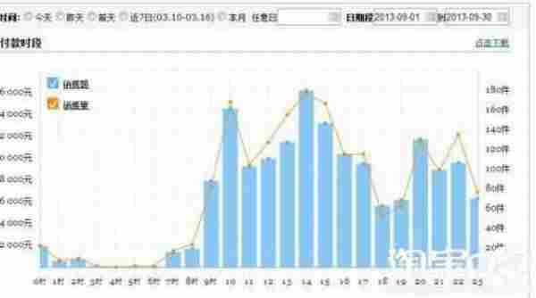 以下是2013年9月份付款时段的数据,买家集中在8—23点。我们在以后的投放中集中投放这个时段。