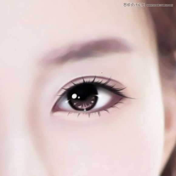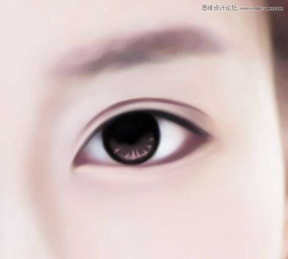 本教程主要使用Photoshop解析人像转手绘中眼睛处理过程,整体的效果很漂亮的说,效果图:原图:首先要先把眼睛的轮廓大致描一下然后就是画...然后就是画出双眼皮,双眼皮根据肤色选色,总之就是比皮色更深的颜色,然后把黑眼球全部抹黑