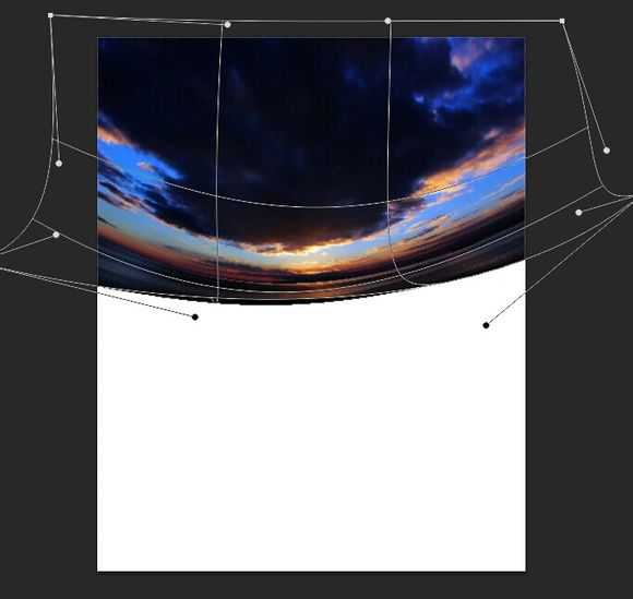 打开天空素材1,CTRL+T旋转和变形弯曲天空效果如图