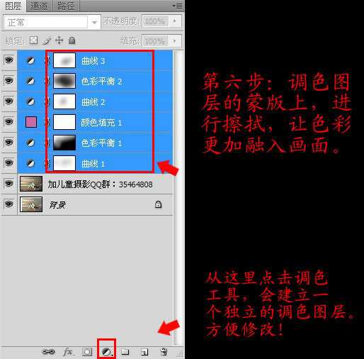 第六步:最后在各调整层的蒙版上修改,让色彩更加融入画面。