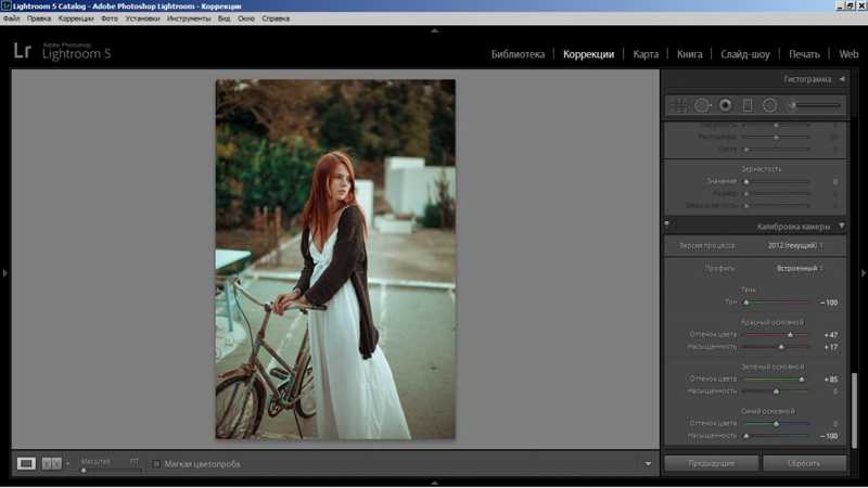 3、在“相机校准”中,改变红原色、绿原色的色相,降低蓝色色相饱和度,色彩平衡偏青色。