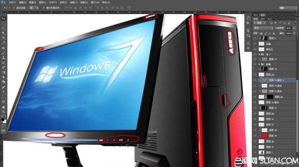 1.抠图:首先第一步要把电脑进行肢解,任何一面、一个按钮、一个标识都要给单独抠出来,抠的时候注意图层顺序,尽量先抠产品最上面的部件,然后再从小面积的往大面积的地方抠。