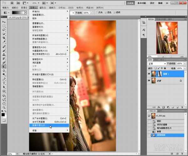▲完成后将影像平面化即可。从主选单选取【图层→影像平面化】。如果做一次的模糊效果不够,可以多做几次。