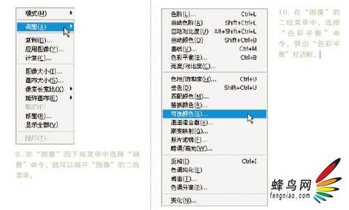 10. 在“ 图像” 的二级菜单中, 选择“ 色彩平衡” 命令, 弹出“ 色彩平衡”对话框。