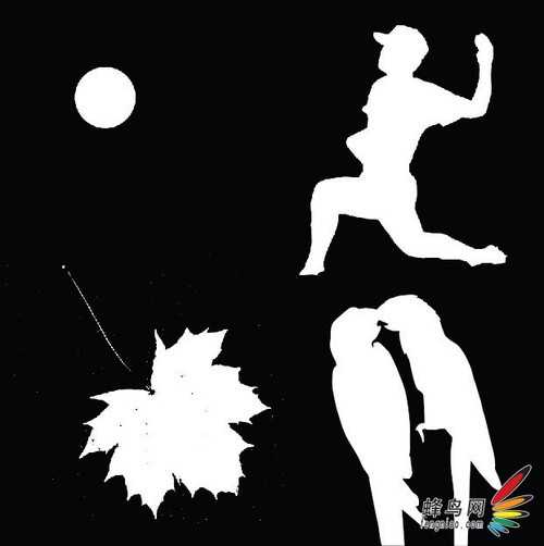 现在给您一个提示:从颜色的角度观察。从颜色的角度观察,问题将变得非常简单:只有黑和白。这意味着如果作为选区载入,这些图形给图像提供的选择只有两种:选或者不选。
