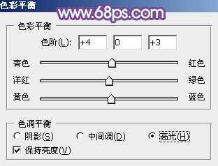 4、创建色彩平衡调整图层,对阴影、中间调、高光进行调整,参数设置如图13 - 15,效果如图16。这一步主要给图片的暗部增加蓝色。