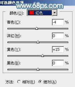 4、创建可选颜色调整图层,对红,青进行调整,参数设置如图15,16,效果如图17。这一步把青色转为青蓝色。