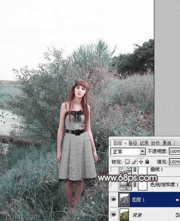 1、打开素材图片,按Ctrl + J 把背景图层复制一层,得到“图层1”。进入通道面板,选择绿色通道,按Ctrl + A 全选,按Ctrl + C 复制。选择蓝色通道,按Ctrl + V 粘贴。点RGB通道返回图层面板,效果如下图。