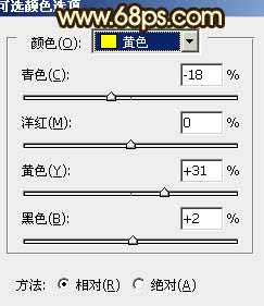 3、创建可选颜色调整图层,对黄、绿、中性色进行调整,参数设置如图3 - 5,效果如图6。这一步是把背景绿色转为黄褐色。