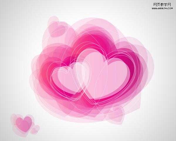 现在我们得到了具有不同透明度的几个心形副本。如图所示(大多的不透明度为10%)。