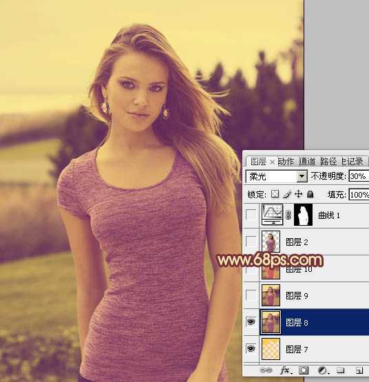 5、新建一个图层,按Ctrl + Alt + Shift + E 盖印图层。图层混合模式改为“柔光”,不透明度改为:30%,效果如下图。