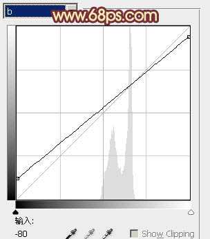 7、按Ctrl + M 调整曲线,对明度及b通道进行调整,参数设置如图8,9,效果如图10。