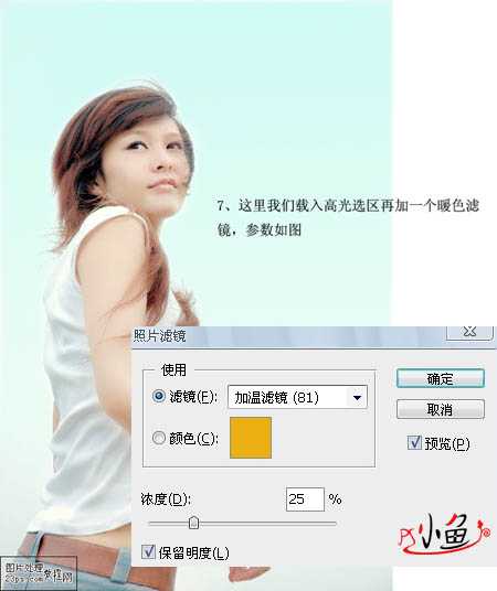 7、这里我们载入高光选区再加一个暖色滤镜,参数如图。