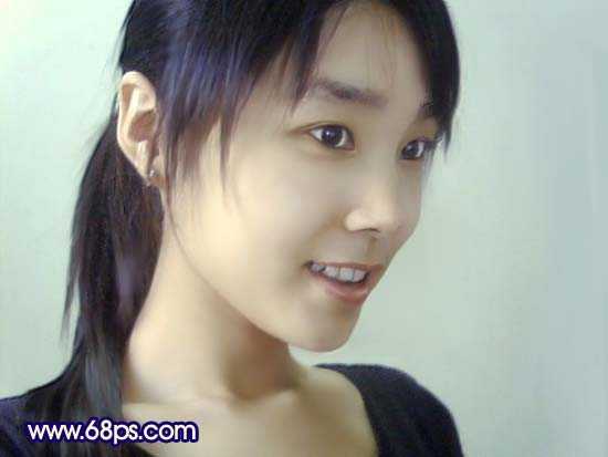 <图7> 5、新建一个图层,盖印图层,用加深工具稍微把人物五官部分的轮廓加深一点。然后把背景部分杂乱的部分去掉,效果如下图。