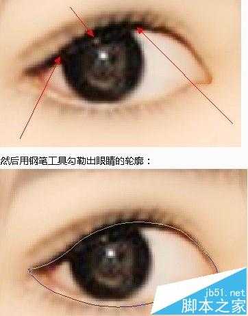 右边的眼睛我只画了眼线,因为没有睫毛(当然眼白也要处理一下)