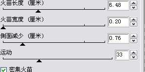 6、下面的参数值是火焰的长度、宽度以及运动的调整。