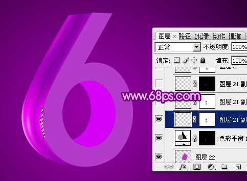 18、新建一个图层,用钢笔勾出右侧的高光选区,羽化3个像素后填充紫色:#DE02F9,如下图。