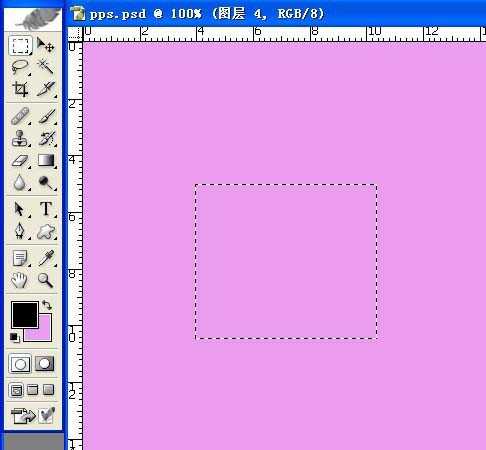 3、这样就可看到画布上有个正方形的图形了,可以移动到画布中间,准备在新建三个同样的正方形图形出来,如下图所示。