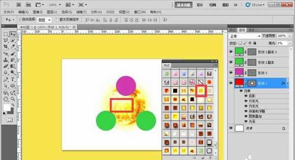 6、我们选择大圆圈,点击选择火焰样式效果。
