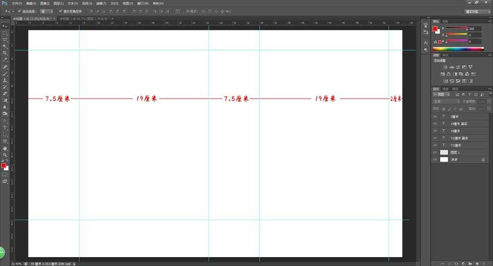 3、打开PS的标尺(Ctlr+R),根据标尺拖出如图尺寸的辅助线。