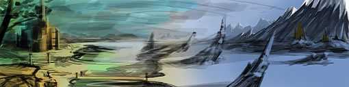 2、为场景添加底色,确定画面左侧是夏天,右侧是冬天。这将为以后的上色提供指导。