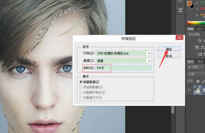 然后用画笔工具沿着人物额头部轻轻擦拭一遍,输出到选区,点击确定。得到如下图。