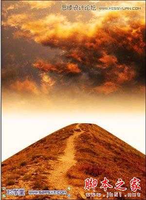 7.在山素材下面新建图层“边缘”,用画笔涂抹,设置前景色 #c25814 背景色#281004 (两种颜色替换的涂抹)