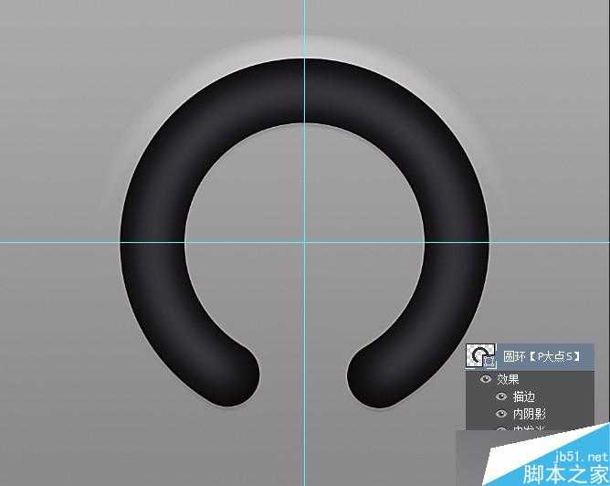 设置前景色为黑色#000000,跟刚才一样的操作方法,利用布尔运算,画出下图中的这个小的圆环出来,添加一个图层样式。