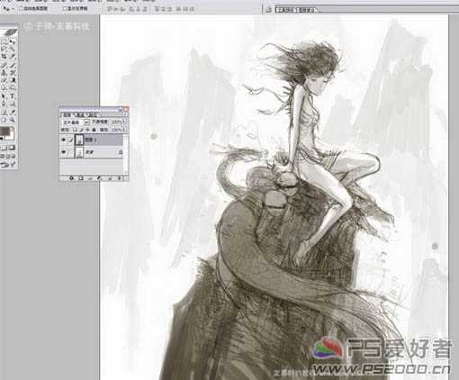 9、当整体画的差不多的时候把图层全部合并,保存。然后在Painter里打开,开始用Painter绘画细节。为了方便大家观看,我用的是中文版的Painter。