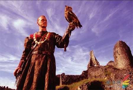 这是和刚刚那张图片画面一模一样的照片,但是这张使用了反光板给人物面部阴影和猎鹰增加了光线。这么一来把整个画面打开了,也使得画面更加生动。
