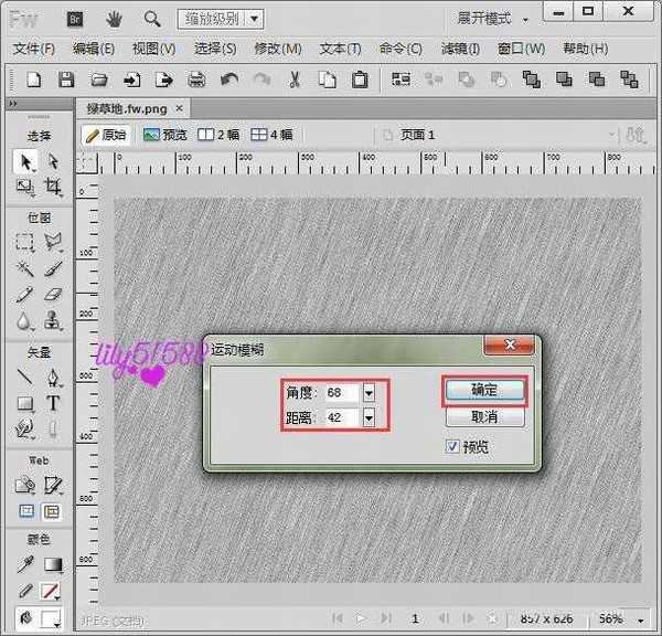 6、在打开的运动模糊里,设置角度为【68】,距离为【42】。