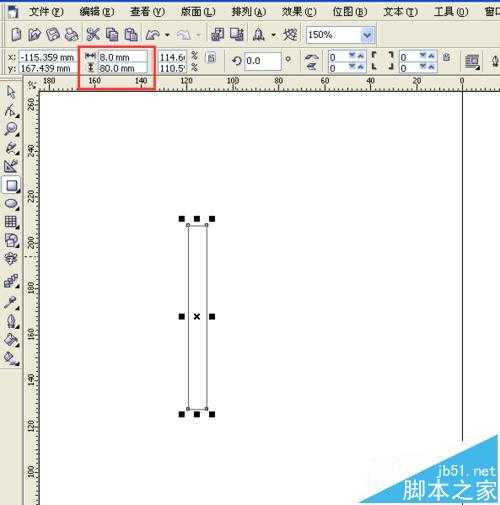 11、用”矩形工具“,画一个宽为8mm,高为80mm的长方形。