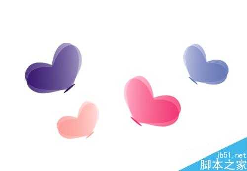 5、对桃心进行复制,旋转,做出蝴蝶的翅膀。如图所示