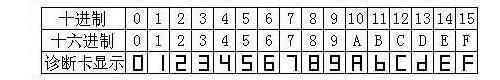 ⑶ 智能型诊断卡PI0050A数码管显示定义: